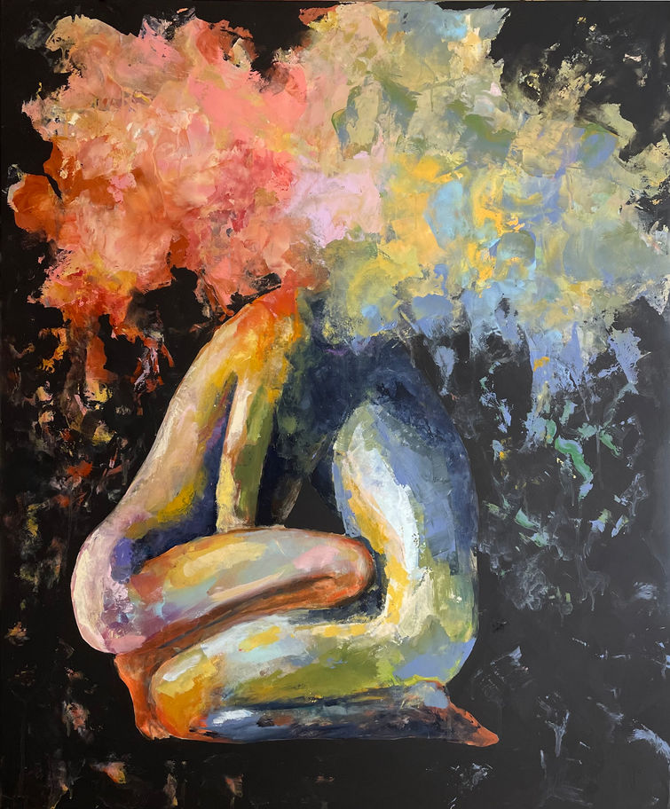 ציור חצי-אבסטרקטי של זוג צבעוני ברקע שחור